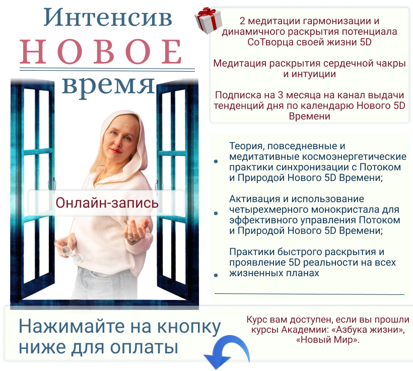 Онлан доступ к интенсиву "Новое время" на 30 дней + 90 дней доступа к квантовому календарю 5D