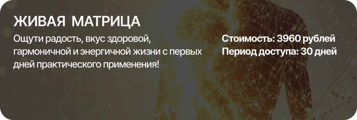 Относительно курса Живая Матрица — прошла на одном дыхании, на мой взгляд, это ключевой курс. После Ковида, получила осложнение на лимфатическую систему, за 4 дня мой вес увеличился на 10 кг, и это не вода, а лимфа, отказала вся лимфатическая система, но как, я не понимала, с курсом Живая Матрица разобралась, это геном клеток, есть над чем работать, пока, кроме медитаций, я вижу выхода. Курс Живая Матрица я прошла дважды и дополнительно медитации