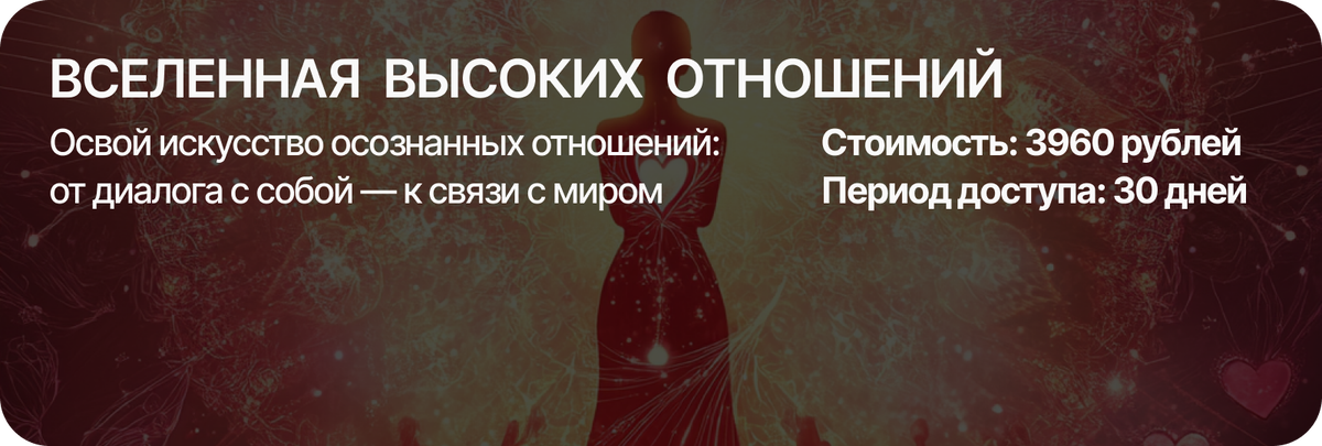 Вы узнаете, как пробудить глубокую связь с самим собой и близким человеком, как позволить любви свободно течь через вашу жизнь, создавая внутренний покой и внешний уют, получите практические инструменты и ключи любви, открывающие двери новых возможностей.