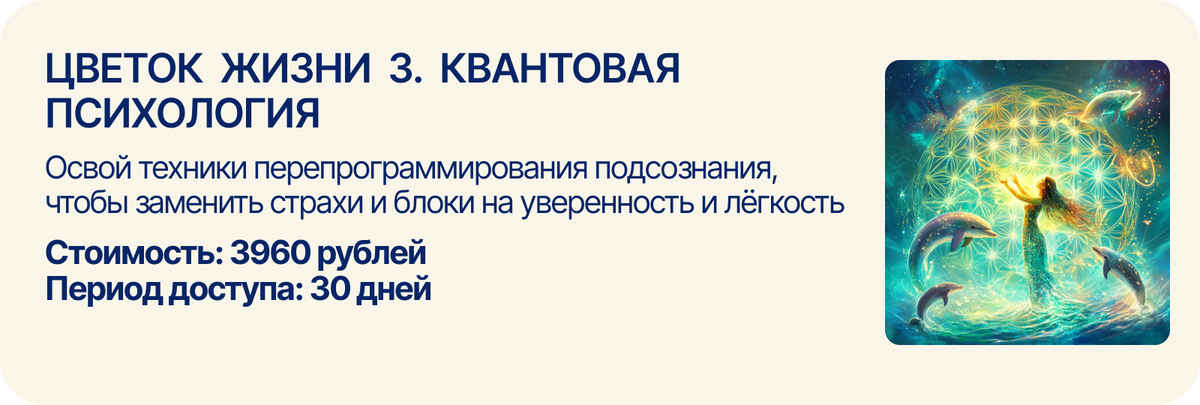«Цветок жизни 3: Квантовая психология» — это глубокое погружение в механизмы сознания, где психология встречается с квантовыми принципами. Мы исследуем, как намерение и внимание перестраивают нейронные сети, открывая доступ к скрытым ресурсам психики.