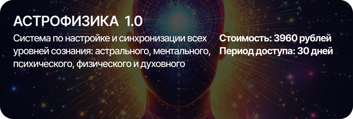 Именно с Астрофизики 1 я начала свое обучение в академии. Знания полученные тут перевернули мой взгляд на мои тела. Огромное удовольствие общаться с тонким планом и получать ответы на любые вопросы. Отдельная благодарность гидам проводникам, которые с вниманием изучают полученный мною результат по каждому уроку, их советы и рекомендации очень важный опыт в практическом использовании новых навыков и знаний. благодарю Мастера за доступность в изложении и передаче знаний.