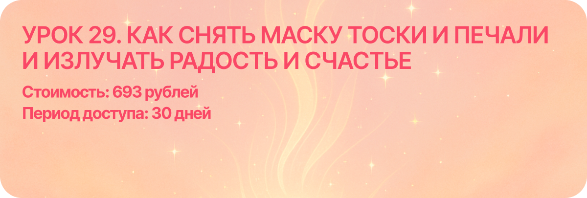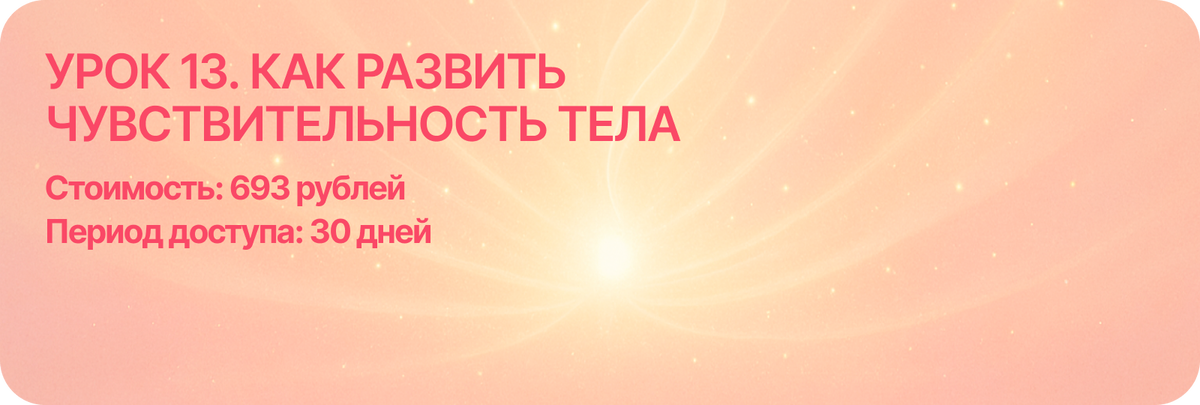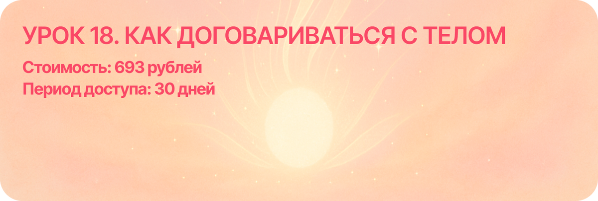 А уже на следующем уроке я расскажу тебе о том, как договориться с телом и жить в гармонии с собой и окружающим миром.