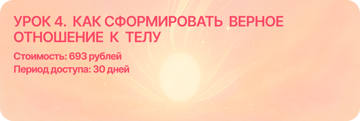 А мы переходим к следующему уроку, где будем учиться выстраивать верные отношения с собой и своим телом.